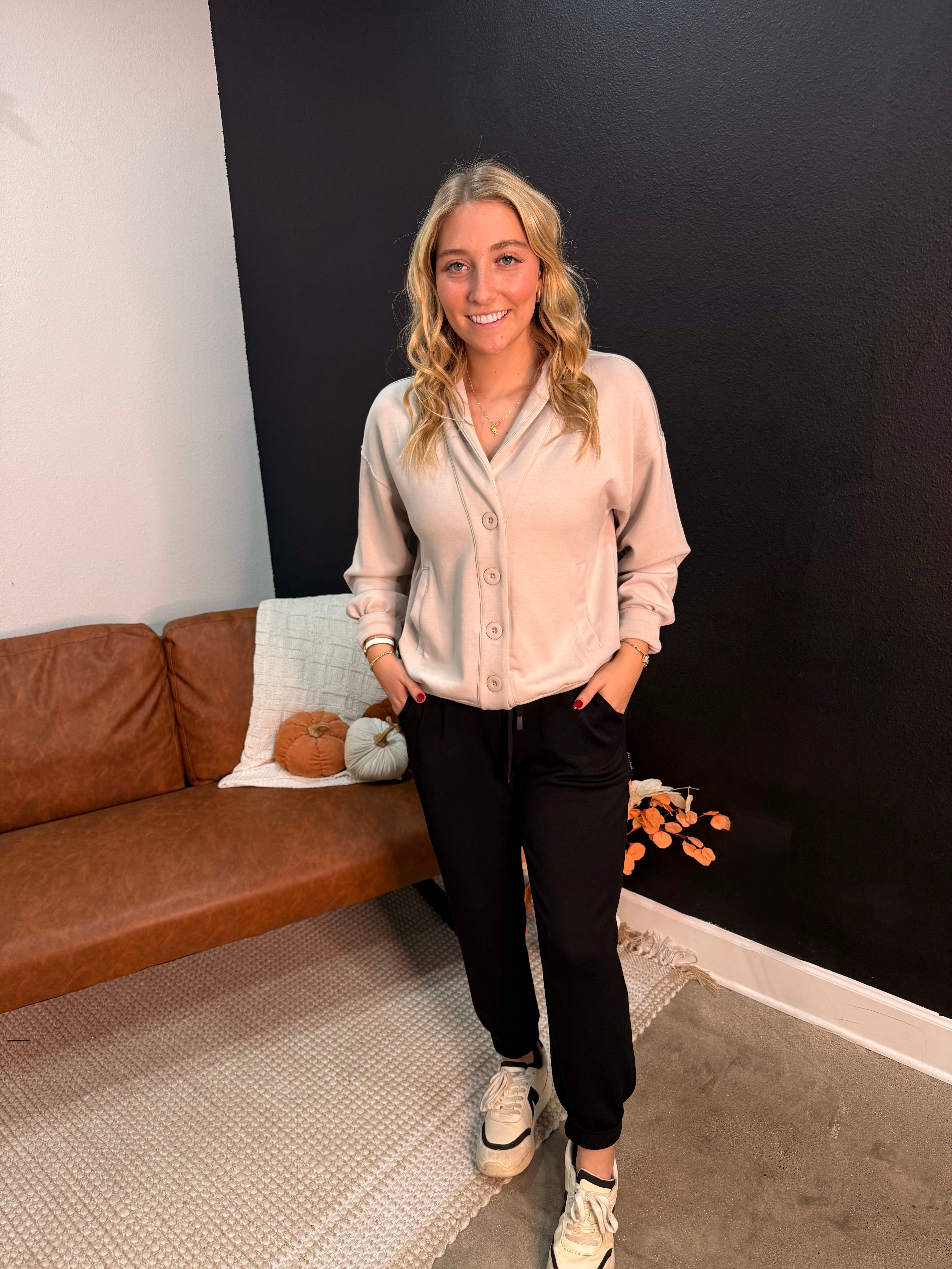 Step into comfort with the Caroline Jogger, designed to move with you all day long. Featuring an elastic waist and adjustable drawstrings, these joggers guarantee a perfect fit no matter your mood. Keep essentials close in the handy side pockets while enjoying the silky-soft blend of modal, polyester, and a hint of spandex for stretch. Ready for lounging or adventures, these joggers bring playful ease to your wardrobe.