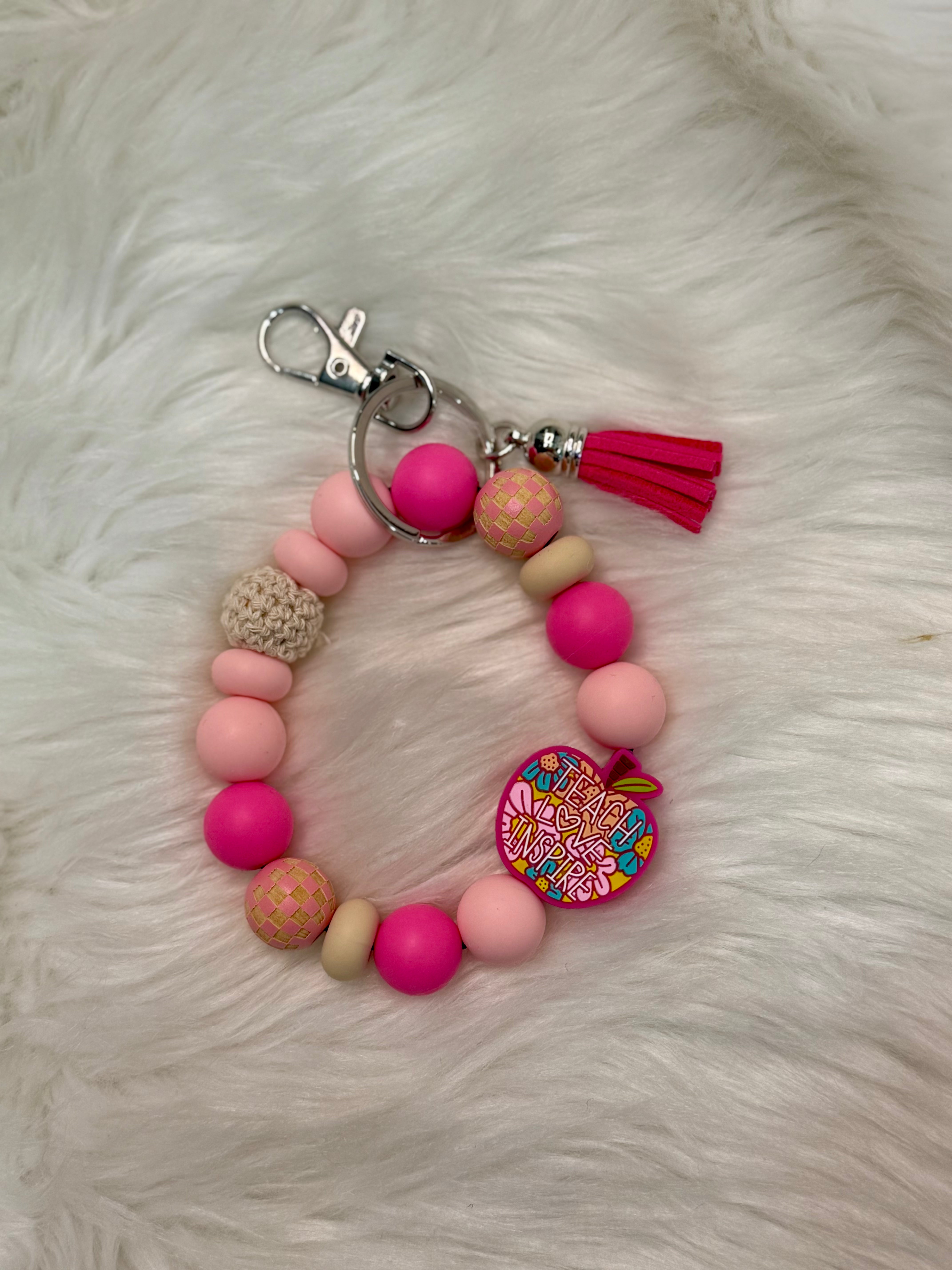 Tired of digging through your bag for keys? This playful keychain wristlet is your answer! Slip it on and keep your keys right at your fingertips—ideal for teachers managing classroom chaos or anyone juggling a busy lifestyle. Choose from a rainbow of colors and fun prints that match your vibe. The comfortable wrist strap design means your keys stay put while you stay mobile. Durable and lightweight, it's the everyday essential that brings a smile to your face. Grab one in every pattern you love!