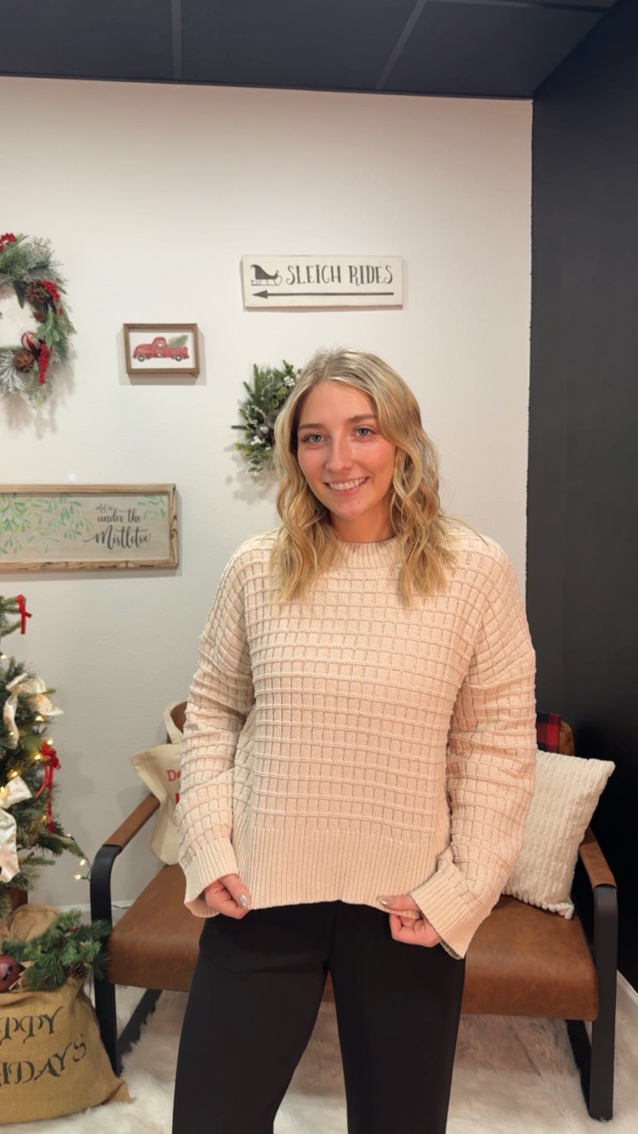 Cozy up in the Scout Sweater, your new go-to for effortless style. This oversized knit features a textured fabric that adds visual interest, paired with a relaxed drop shoulder cut for that laid-back vibe. The round neckline and ribbed hem keep things polished, while long sleeves and convenient side slits make it perfect for layering or wearing solo. Whether you're running errands or catching up with friends, this casual sweater top brings comfort and charm to every outfit.